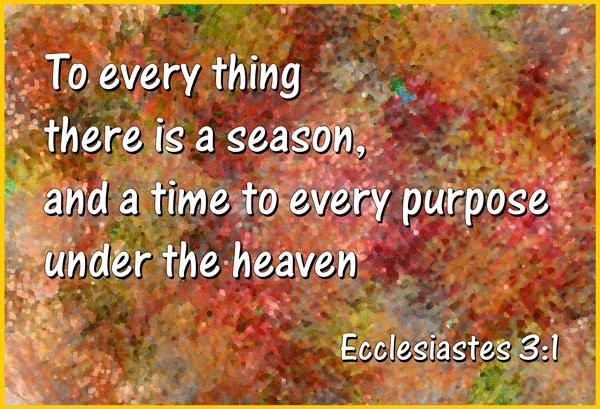 Seasons are really nothing more than a periods of time that we each go through. For instance, I’m in a learning season in my ministry. I’m having to try new things, make mistakes, learn from those mistakes and work on improving them for next time. Does that resonate with anyone? I’ve been in seasons where I was on “cruise control” where everything was smooth sailing and I could relax a little more about things since everything in my life seemed to be going well. I’ve also had seasons where I thought I was going to literally die. Everything was collapsing around me and all hope seemed lost. Certainly I’m not the only one that has had those same seasons?